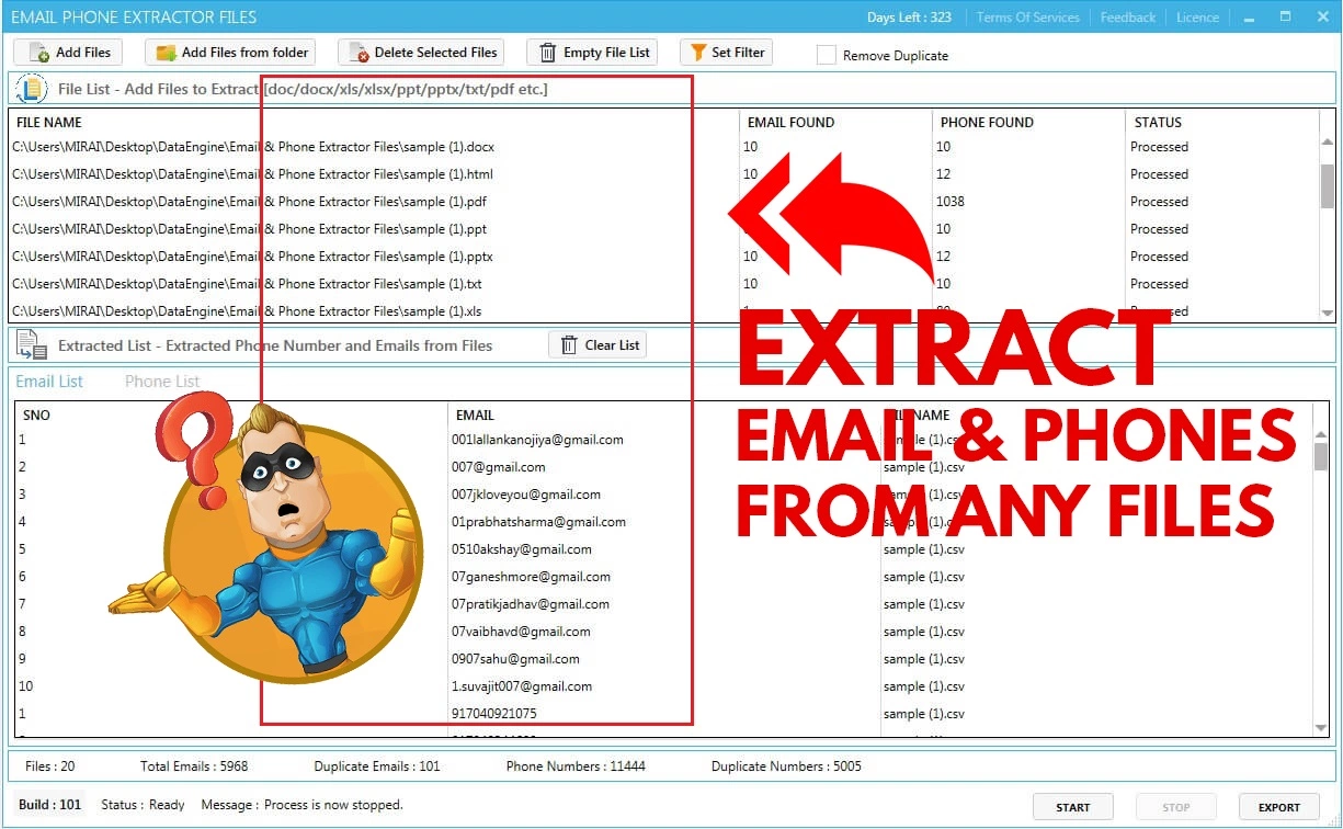 Email & Phone Extractor Files software can intelligently collect bulk data from any files locally.