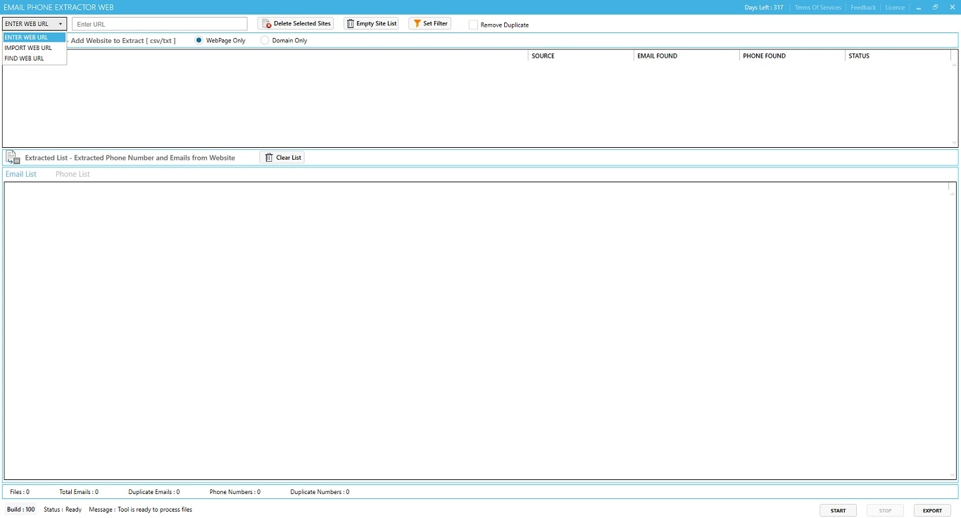 Extract premium unlimited individuals contacts from search engine & website with no manual effort. It is one of the fastest software available in the market. Email & Phone Extractor Web is a tool that collect contact information such as Email, Contact Numbers and other important information from Search Engine & Website.
