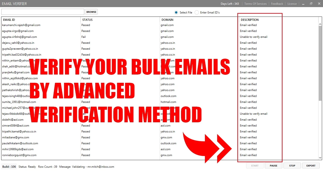 Email Verifier tool can intelligently verify bulk email addresses for marketing purpose.