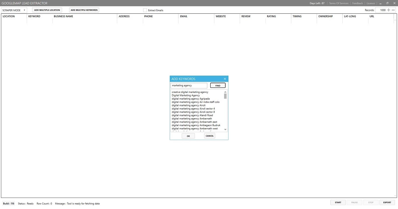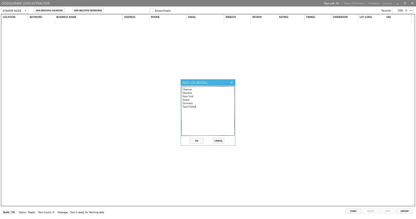 User can add multiple location and multiple keywords at same time.