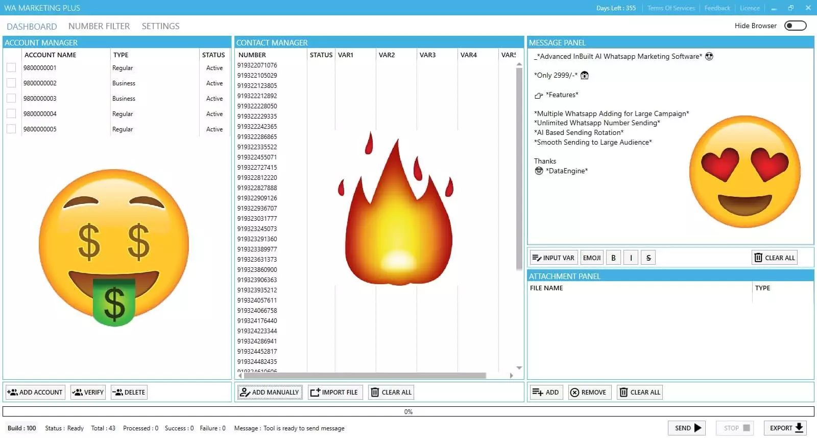 Whatsapp Marketing Plus uses Whatsapp Web technology but adds useful features to do Whatsapp Marketing and send Whatsapp messages to multiple users at the same time. Here are the reasons why you should use Whatsapp Marketing Plus to contact all your friends / relatives or potential customers to do Whatsapp marketing at a professional level.