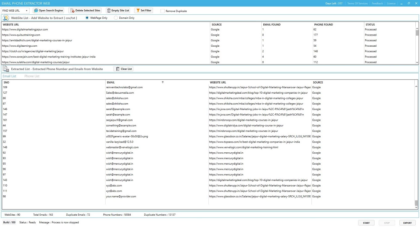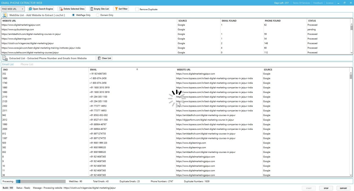 Extract premium unlimited individuals contacts from search engine & website with no manual effort. It is one of the fastest software available in the market. Email & Phone Extractor Web is a tool that collect contact information such as Email, Contact Numbers and other important information from Search Engine & Website.